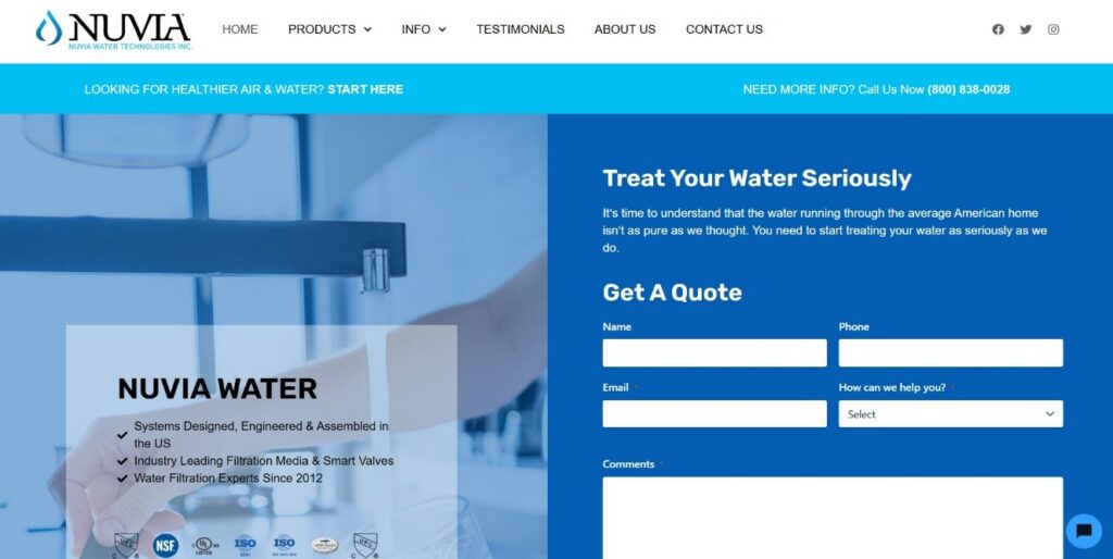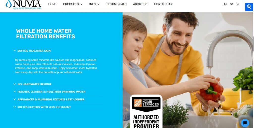 After completing the site the client engaged our Social Media team to create engaging posts for their wholesale water division Evince, and to drive new appointments to the Nuvia water residential products, and to feature their partnership as a Home Depot Home Services Provider.